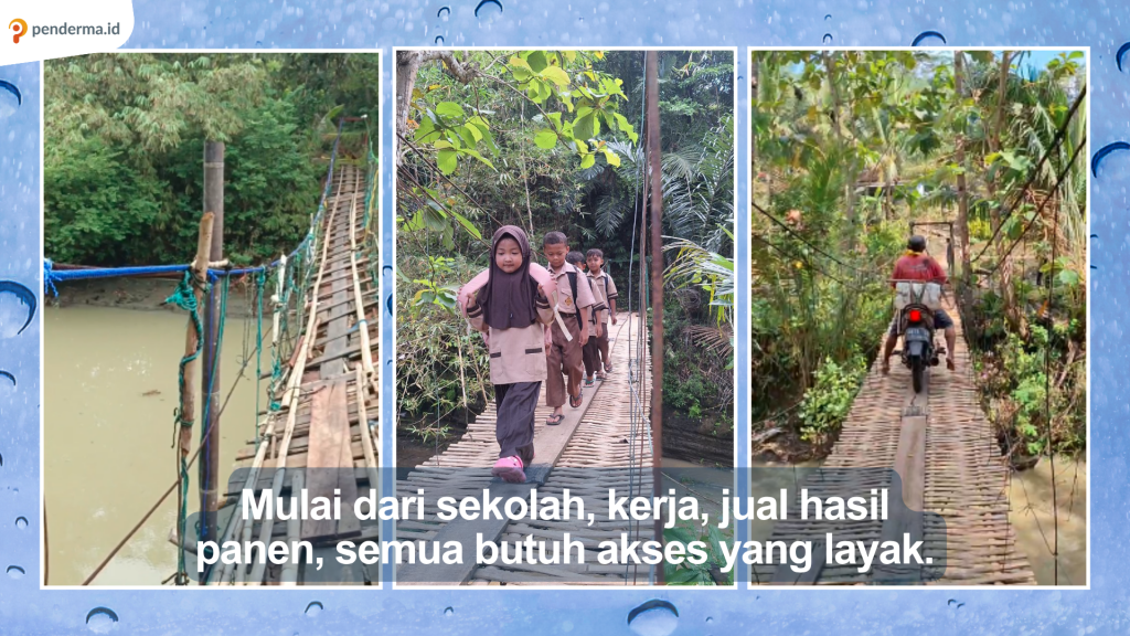 Bayangin aja, anak-anak kecil yang mau ke sekolah harus jalan di atas bambu licin, sambil pegang tali supaya nggak jatuh ke sungai. Atau orang tua yang sakit tapi nggak bisa dibawa ke puskesmas karena jembatannya putus. Semua aktivitas warga mulai dari sekolah, kerja, jual hasil panen, semua itu langsung berhenti cuma karena satu hal: akses yang nggak layak.